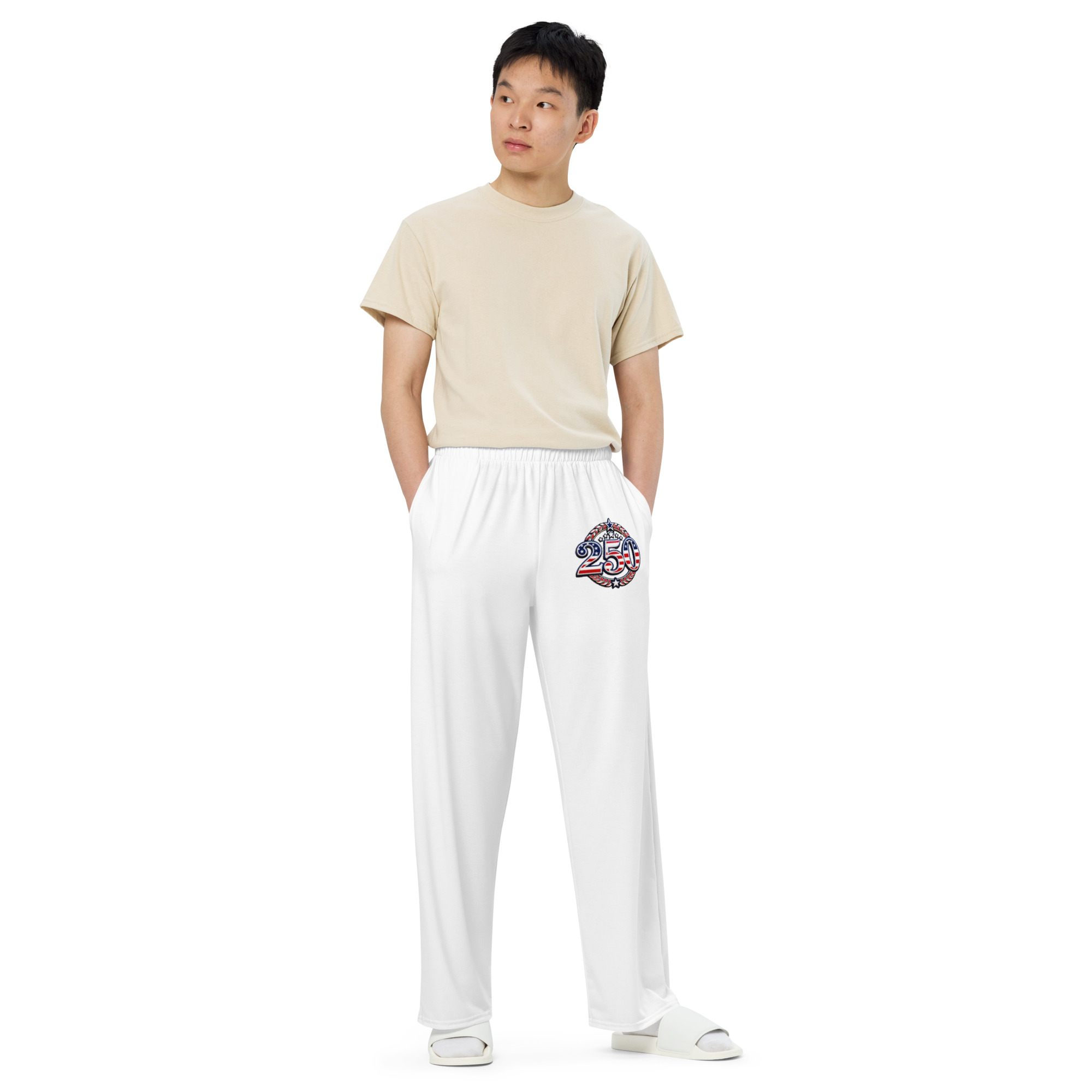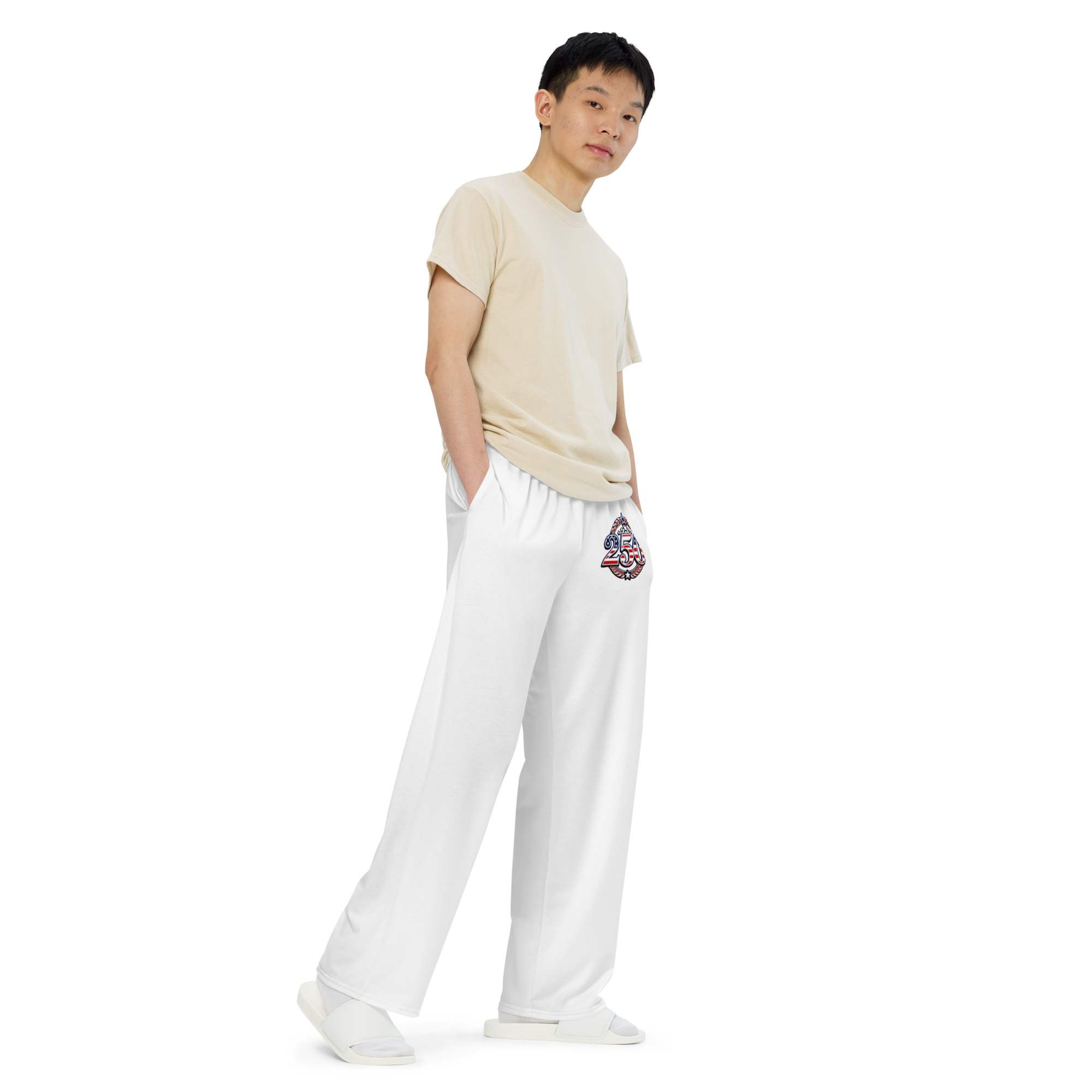 – Elastic waistband with a white drawstring